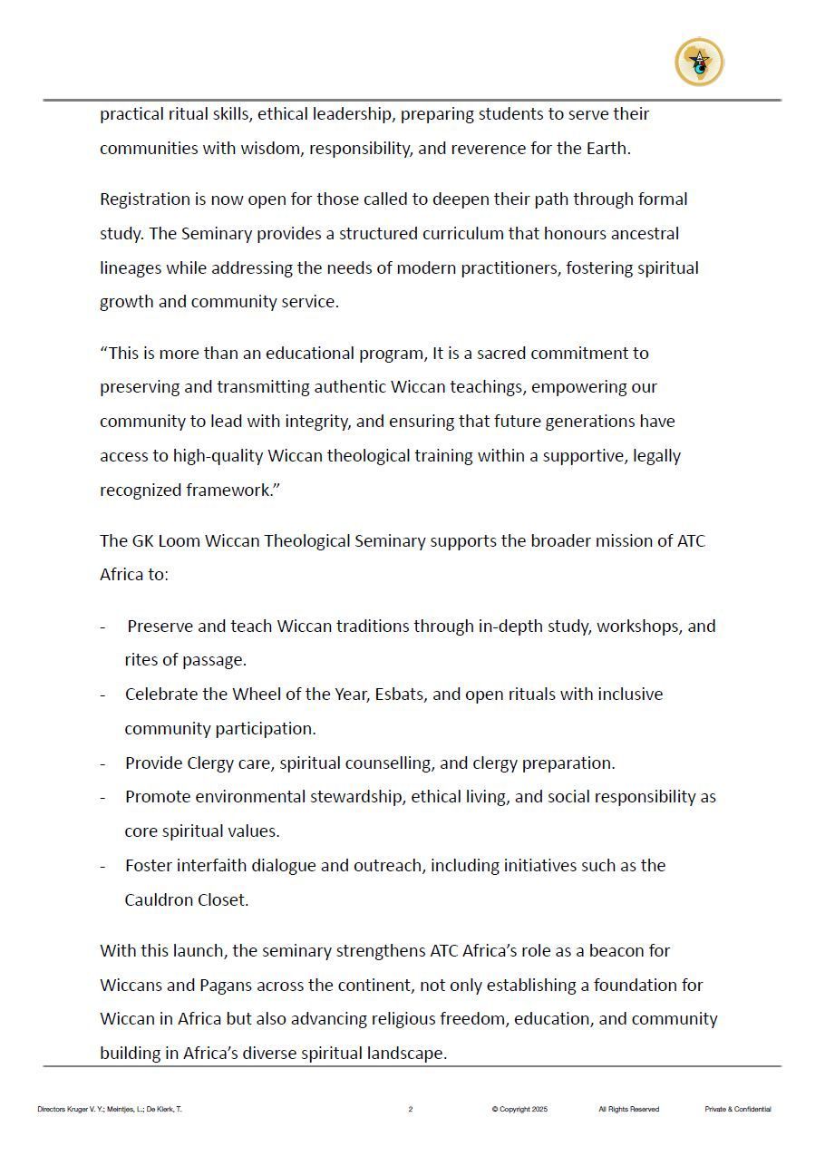 A New Era of Lineage-Rooted Education and Clergy Training for Wiccans in Africa
